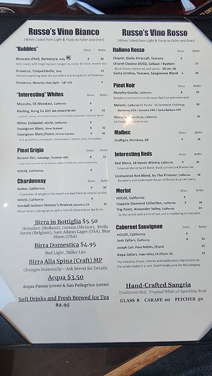 Complement your meal with fresh salads, hearty pasta, or delightful appetizers. Guests rave about the free garlic rolls and artisan ice cream, enhancing a warm, inviting atmosphere with attentive service. Whether dining as a couple or with a large family, every experience at Russos promises delicious food and cherished memories.